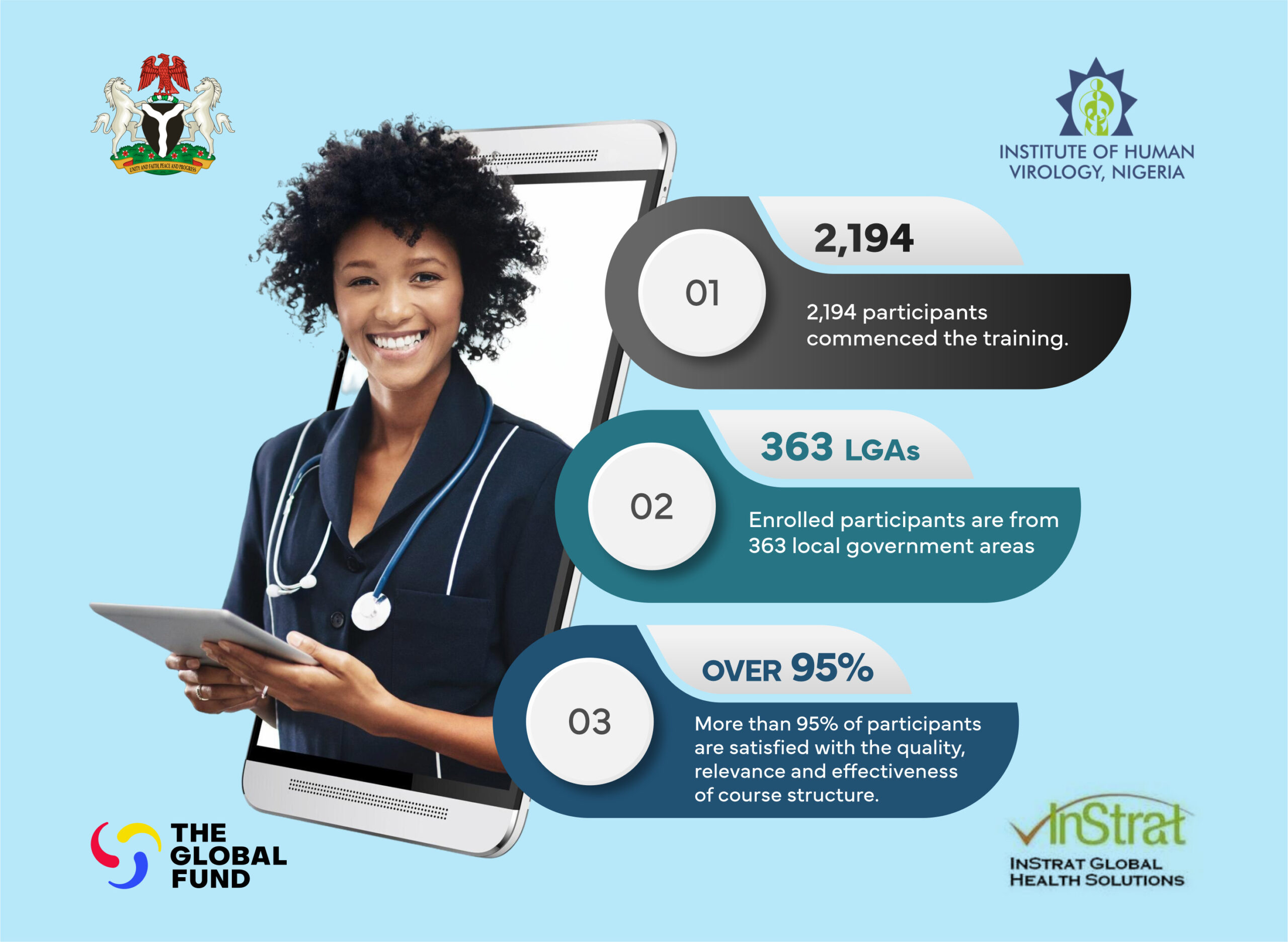 Augusta Kalu, VTR Senior Manager InStrat added that measures such as engagement of linkage coordinators to follow-up with healthcare workers in private hospitals, personalized interaction with inactive participants and working with state sub-recipients and the government have been adopted to encourage completion of the courses.