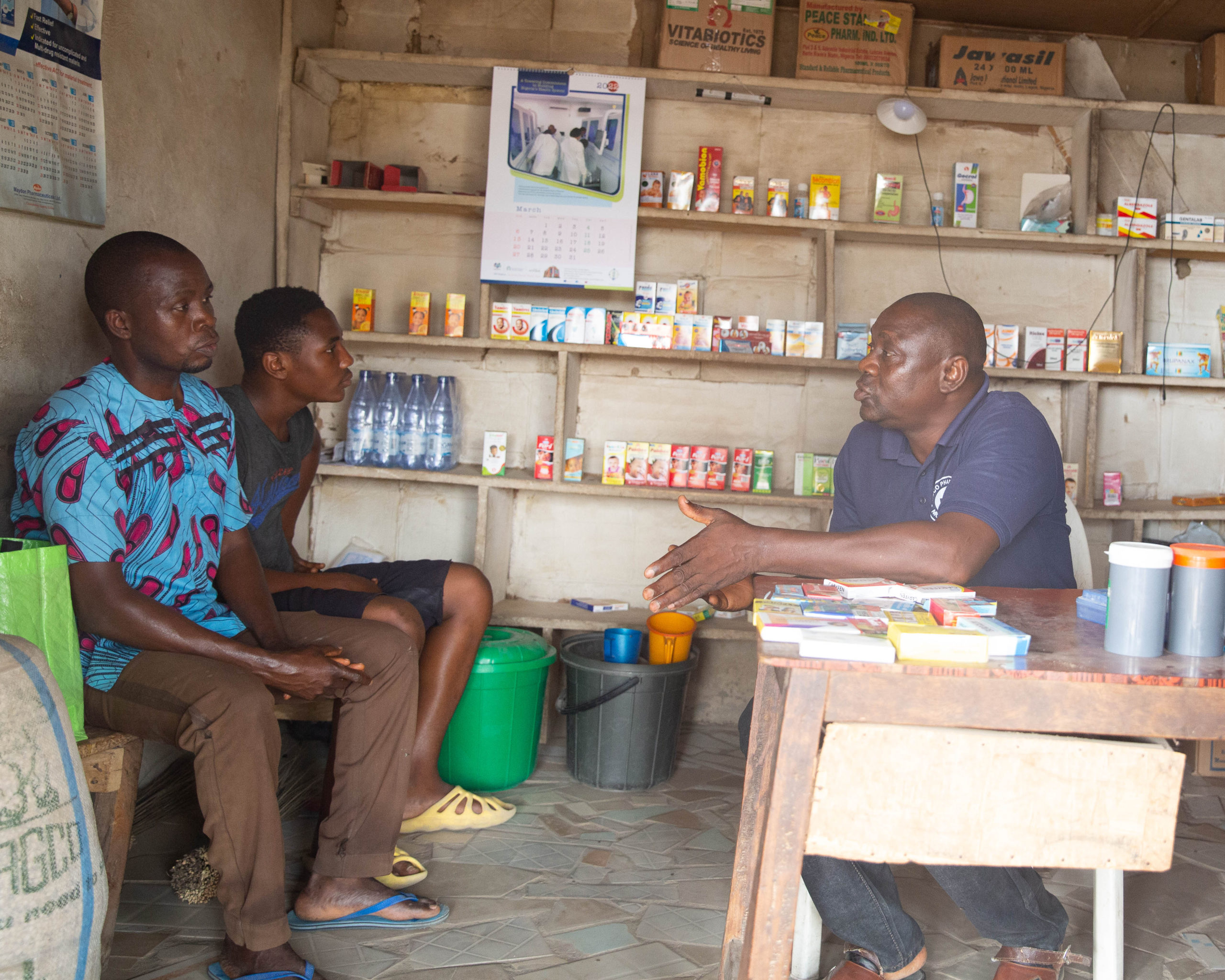Figure Above: A Patent Medicine Vendor, Mr. Peter Audu, interacting with customers in his store in Nasarawa State.