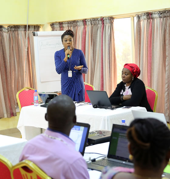 Unit Head, Mrs. Martha Okposo addresses staff at a review meeting